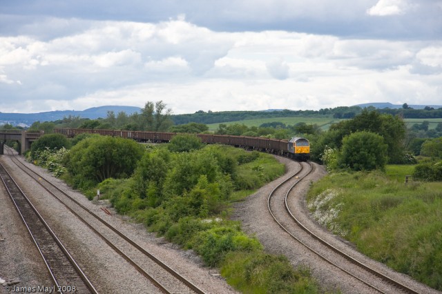 47237 leads a Cardiff Tidal to Stockton empty scrap working over Bishton Flyover