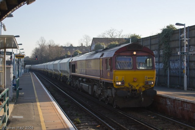 66232 passes Wandsworth Road with the 7V71 Cliffe to Acton loaded BRETT hoppers