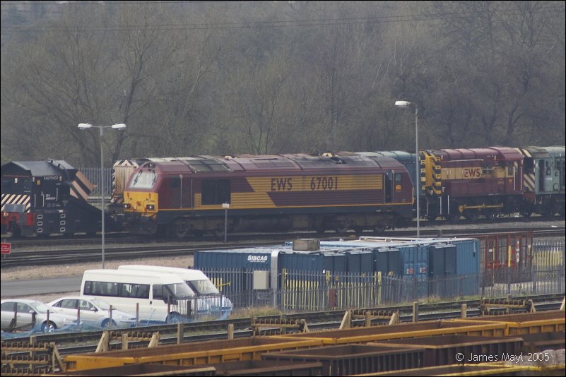 67001 runs out of Toton for a test run upon re-instatement - 1st April 2005