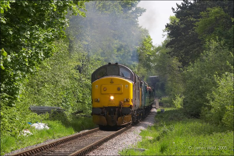 37401 and 37190 accelerate hard up the climb to Medstead - 13th May 2005