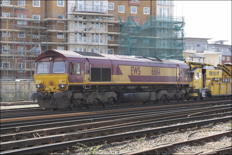 66114 stabled in Basingstoke south yard with a ballast train - 26th March 2005