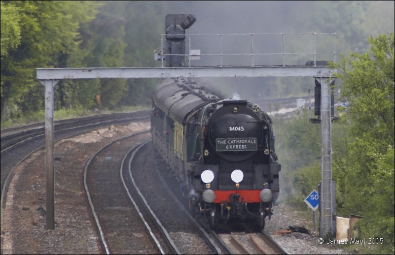 34045 'Ottery St. Mary' approaches Worting Junction with 'The Cathedrals Express' to Littlehampton - 10th May 2005
