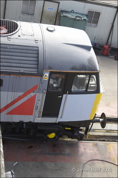The partially repainted front of 47358 under the bridge at Maritime - 2nd May 2005