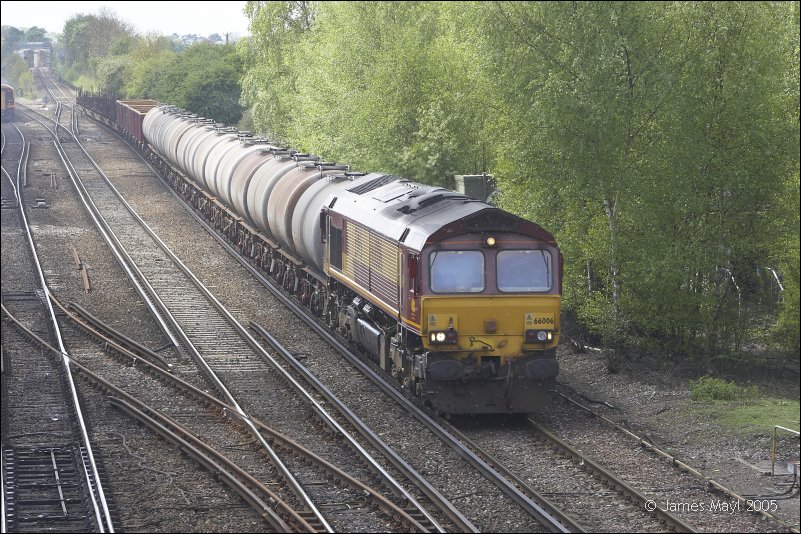 Another view of 66006 hauling 6M44 past Worting Junction - 5th May 2005