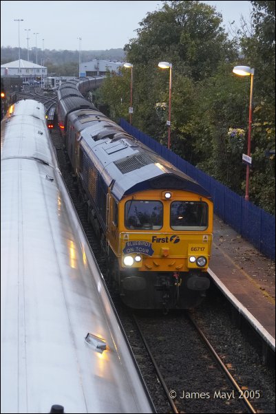 73204 and the rake of ex-GNER MK3s stretch out behind 66717 - 2nd November 2005