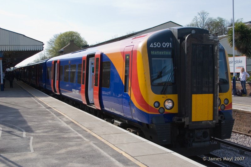 450091 stands at Basingstoke with a Waterloo bound service - 17th April 2007