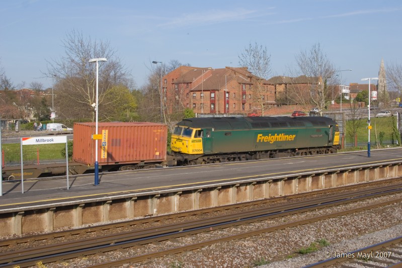57004 'Freightliner Quality' shunts a consist out of Millbrook Container Terminal - 5th April 2007