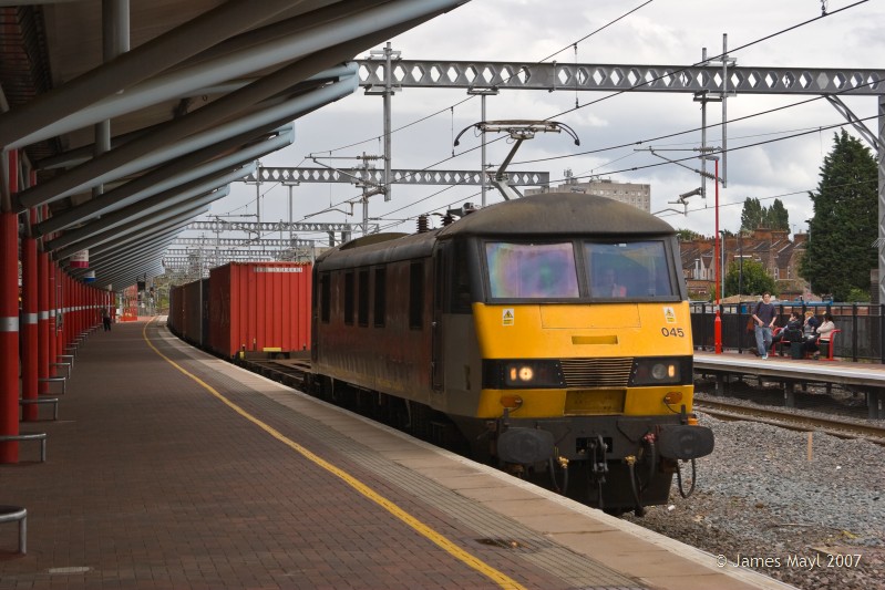 90045 passes Rugby with the 4M88 Ipswich to Basford Hall Freightliner - 16th August 2007