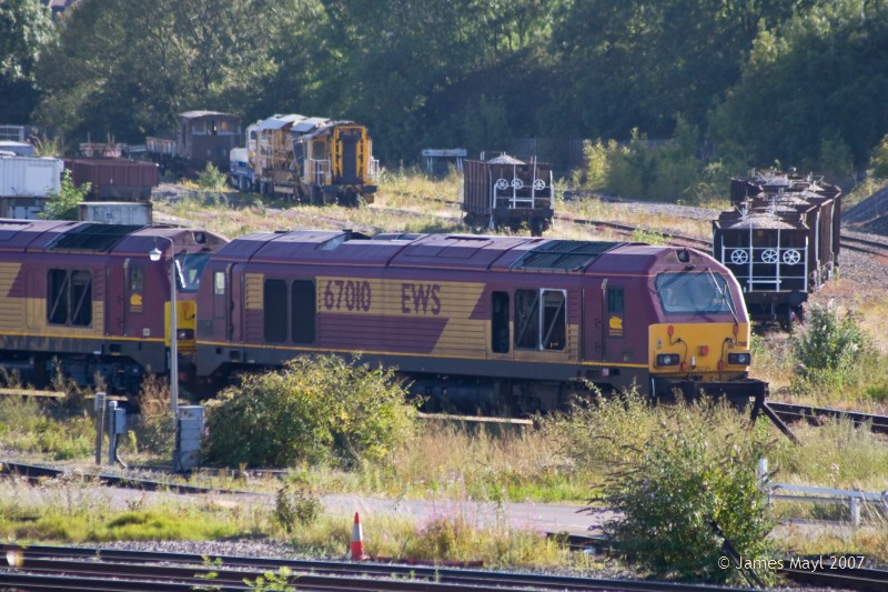 Partly robbed 67010 stored outside Toton TMD - 26th August 2007