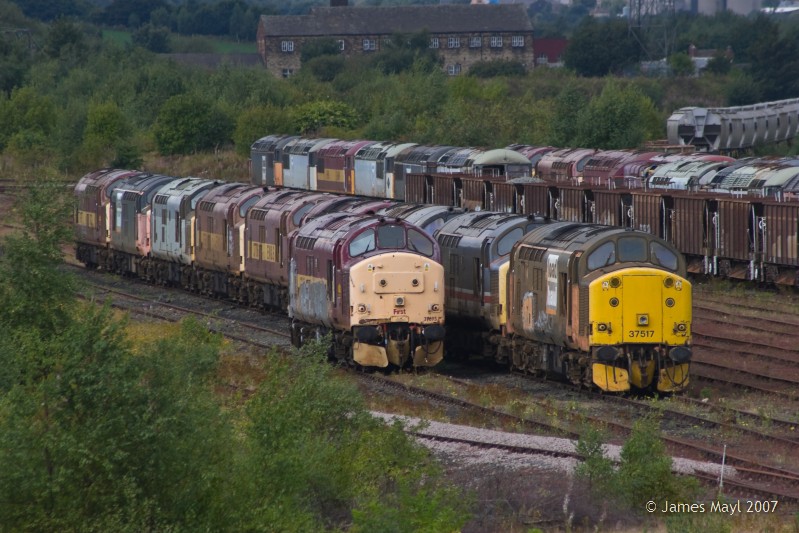 A view of the 37s in the scrapline at Healey Mills - 30th August 2007