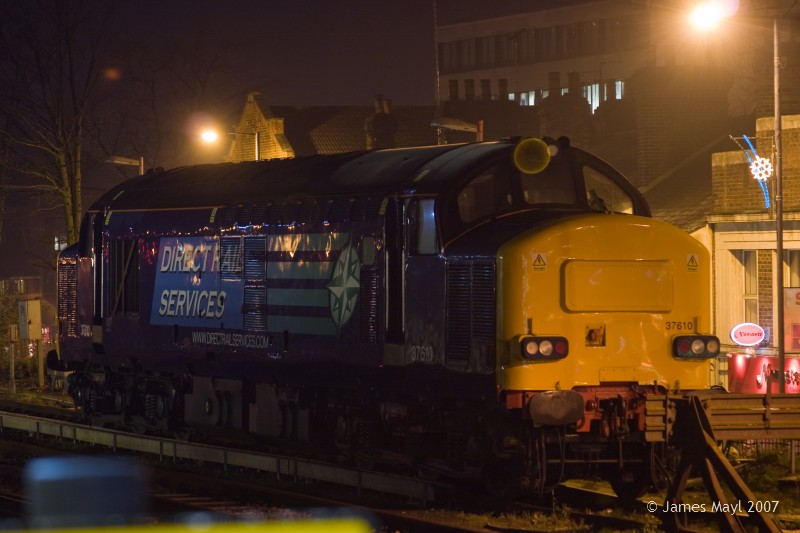 DRS Compass liveried 37610 stands in the Hurdles at Woking, after having failed the day before - 12th December 2007