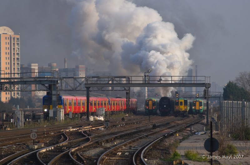 A busy moment at Clapham Junction, with the first 5 lines all full - 18th December 2007