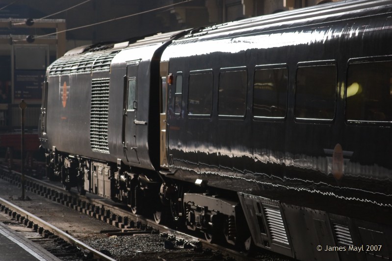 Another view of the winter sun illuminating 43067, and glinting down the side of a First Class vehicle - 18th December 2007