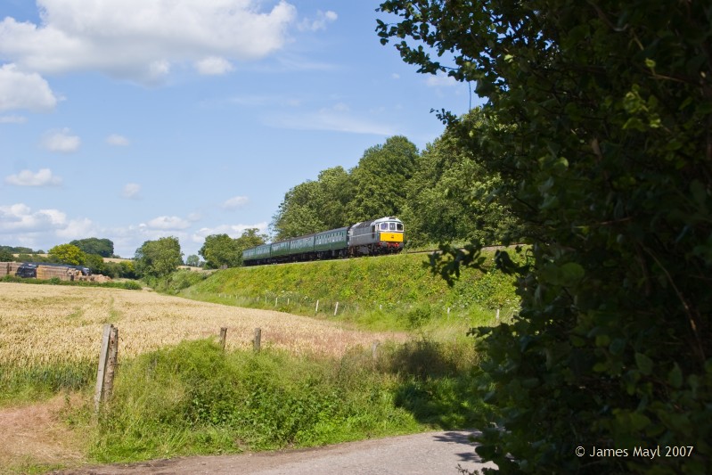 In a typical Hampshire country scene, D6593 rolls past North Street, heading for Ropley - 7th July 2007