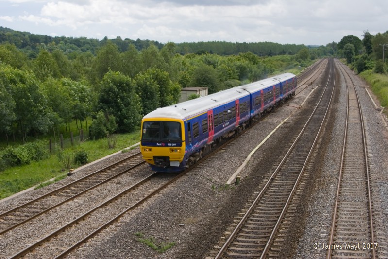 'Dynamic Lines' liveried 166207 passes Lower Basildon with a stopper to Oxford - 16th June 2007