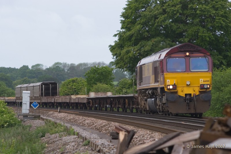 Pioneer 66001 passes Steventon with the 6M49 Southampton to Washwood Heath, assorted car carriers - 19th May 2007