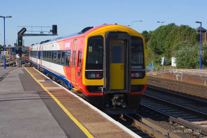 Another view of brand new 158888 departing from Eastleigh on the Totton shuttle - 29th May 2007