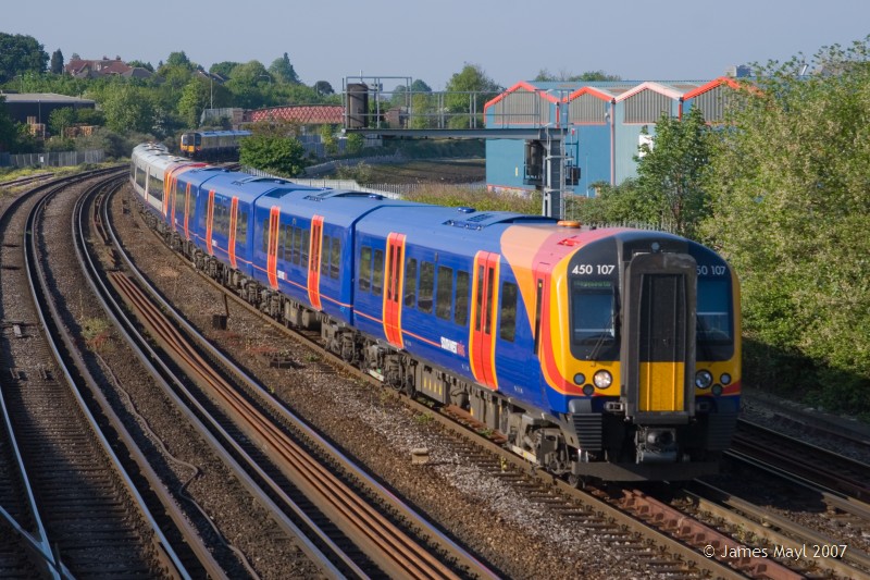 450107 leads a hybrid formation past Mount Pleasant, with a Weymouth service - 3rd May 2007