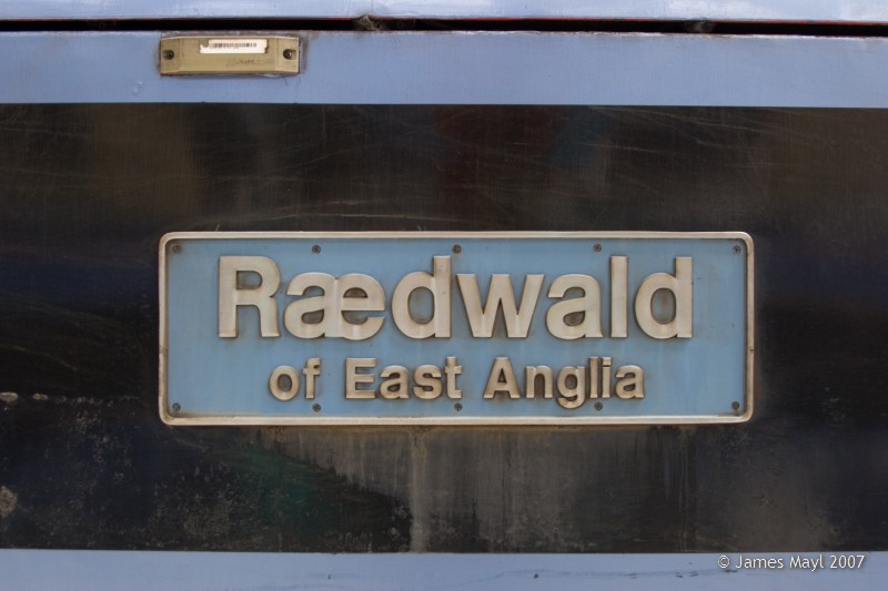 'Raedwald of East Anglia' nameplate on 90003 - 8th May 2007