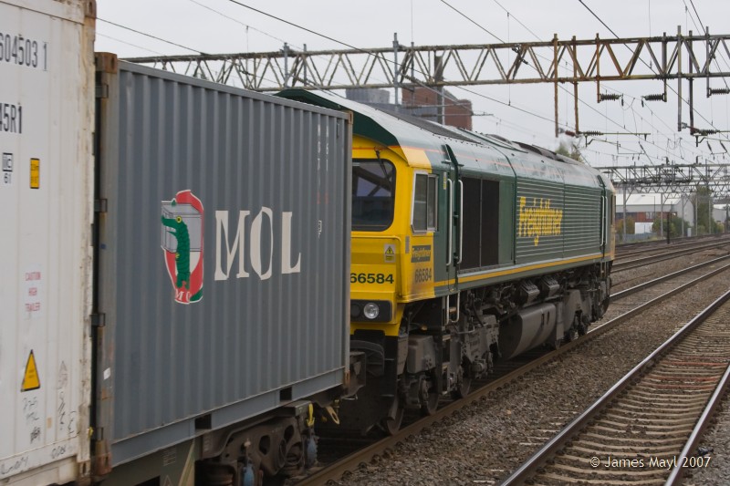 A final view of 66584 passing Harrow & Wealdstone with 4Z42 from Willesden Brent to Garston - 24th October 2007